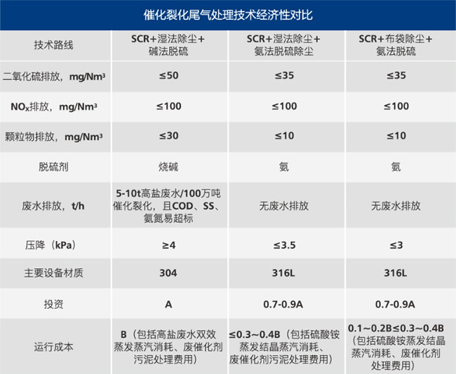 尊龙凯时环保催化裂化尾气一体化处理技术与常规碱洗相比具有明显的优势 ,在达到相同脱硫(≤50mg/Nm3,可达到35 mg/Nm3)、脱硝(≤100mg/Nm3)、除尘(≤10mg/Nm3)指标的情况下 ,投资节省10~30%,运营费用节约50%以上 ,无高盐废水排放 ,无二次处理费用 ,副产硫酸铵。